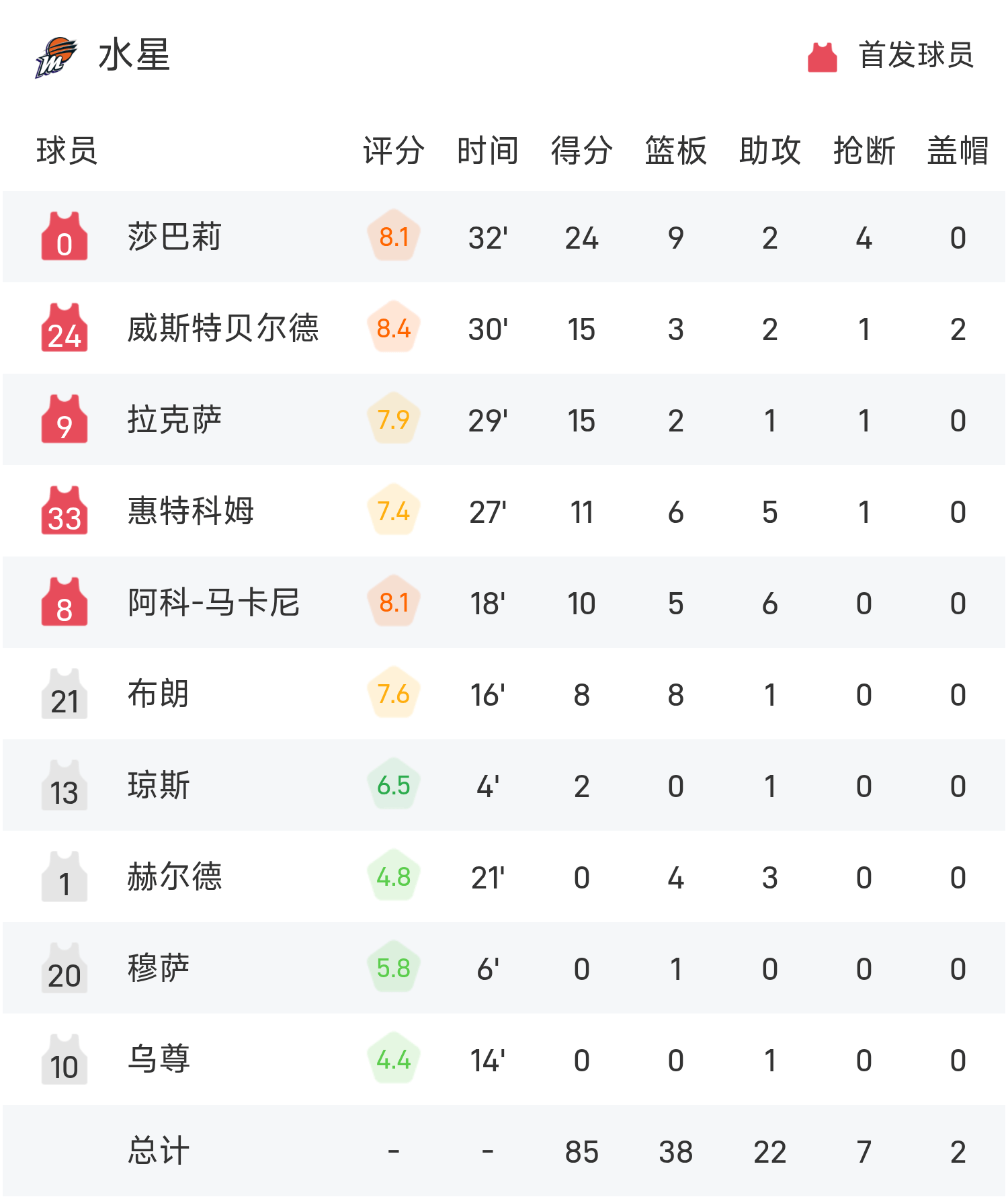 09月 15 2025 0 🏀WNBA战报:莎巴莉24分9板,西姆斯32分,水星85-80险胜火花 xiaoqiao 2025-09-15 nba 146 06月02日讯 25赛季WNBA 常规赛,火花对阵水星。双方全场战罢,火花80-84不敌水星。莎巴莉得到24分9板2助率队取胜,西姆斯空砍全场最高的32分5板4助。球员数据 查看更多详细数据 查看更多